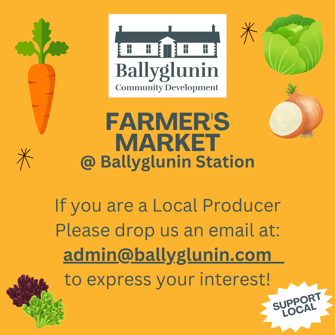 Ballyglunin Station is exploring the launch of a monthly Farmers Market, and we want our local food producers to be a crucial part of it.If you're a local food producer interested in participating, please drop us an email at: admin@ballyglunin.com. Please include a brief overview of your products.Join us in bringing our community together by presenting your best products. Let's promote sustainable shopping practices. Thank you, and we look forward to your participation!