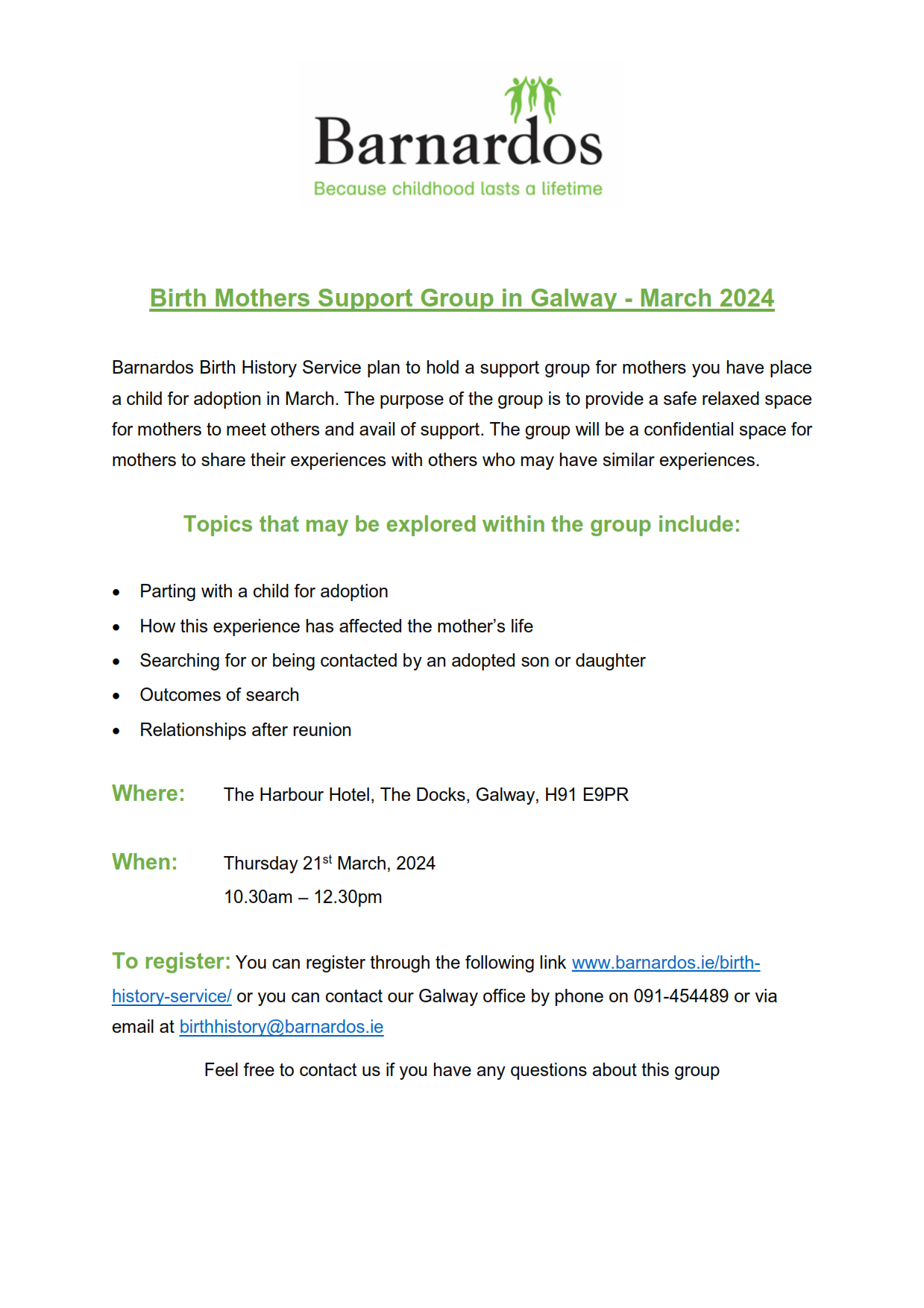 Galway Town Hall Date: Monday 12th Feb 2024 Time: 11am to 3pm including lunch Location: The Galmont Hotel & Spa Lough Atalia Road, Galway H91 CYN3 Please register here: https://www.surveymonkey.com/r/YLDG69B (*the event is currently full but you can request to join the waiting list if spaces free up)