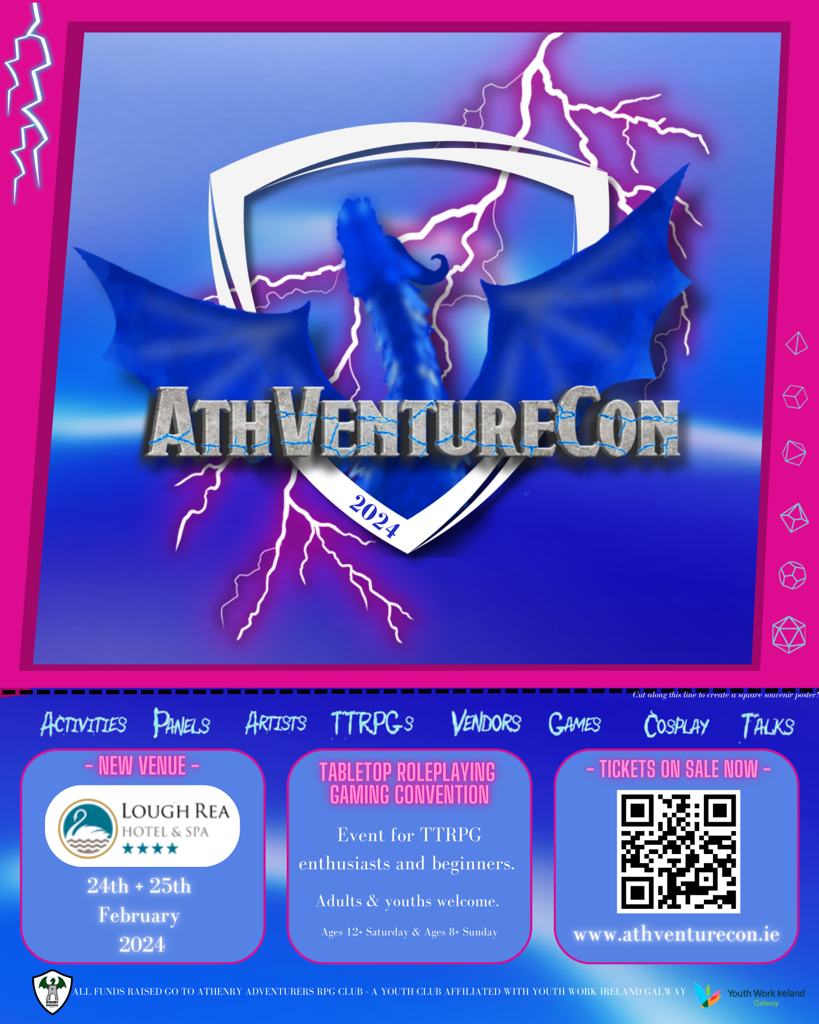 An awesome outing for youth clubs, TTRPG fans, and families with older children and teens. All proceeds go to Athenry Adventurers RPG Club, a youth club affiliated with Youth Work Ireland Galway. More Information and tickets available here: