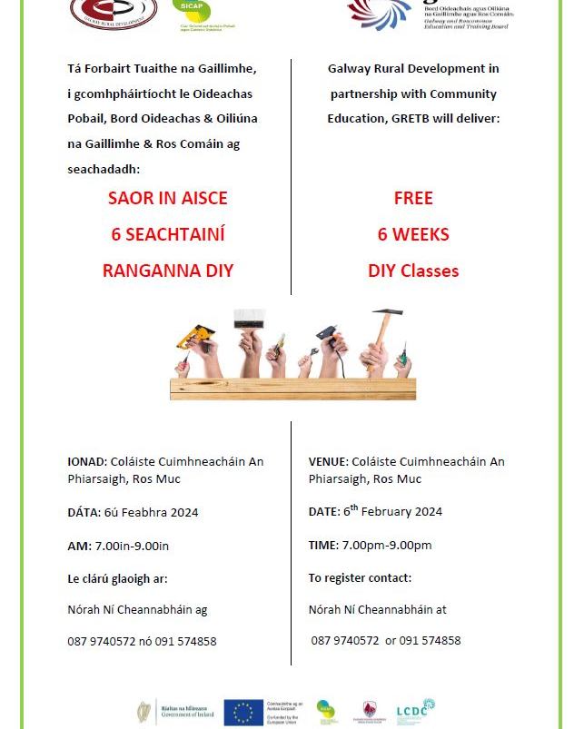 Tá SCOLÁIREACHTAÍ GAELTACHTA Phádraig Mhic Phiarais 2024 de chuid Chomhairle Chontae na Gaillimhe oscailte anois d’iarratais ó dhaltaí dara leibhéal atá ina gcónaí i gContae na Gaillimhe. Spriocdháta: Dé hAoine, 15 Márta 2024 ag 4:00 i.n. Gach eolas, treoirlínte agus foirm iarratais le fáil ag an nasc seo a leanas: https://ow.ly/NzIb50QtwZL