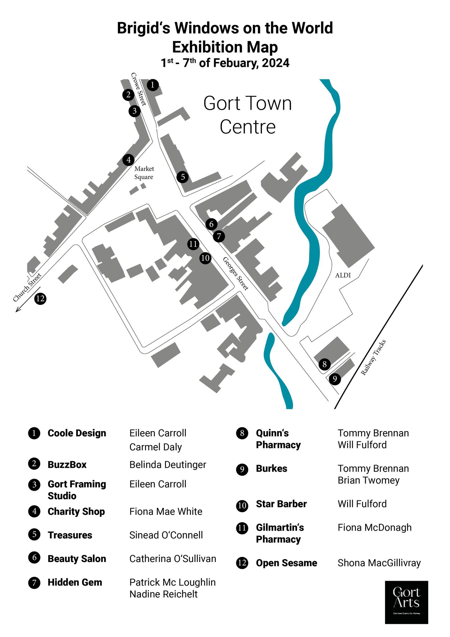 Check out the wonderful "Brigid's Windows on the World" exhibition around the town from today until Feb 7th. There are many skillful artists living in and around Gort who are showcasing their art. It's part of the Brigid celebrations happening this weekend (Saturday, 5:30 at the Square) and hosted by the Gort Arts Group.