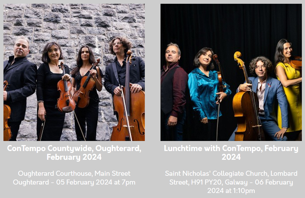 Lunchtimes with ConTempo take place on the first Tuesday of the month. Galway Music Residency is proudly supported by the Arts Council of Ireland, University of Galway (Education Partner) and Galway City and County Councils. For further information, visit www.galwaymusicresidency.ie